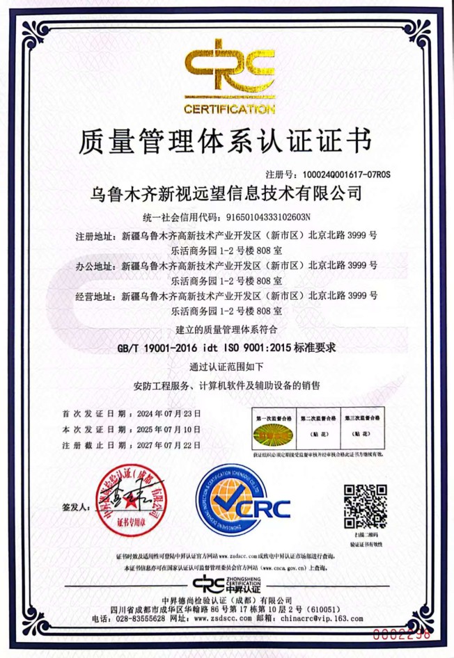 質量管理體系認證證書